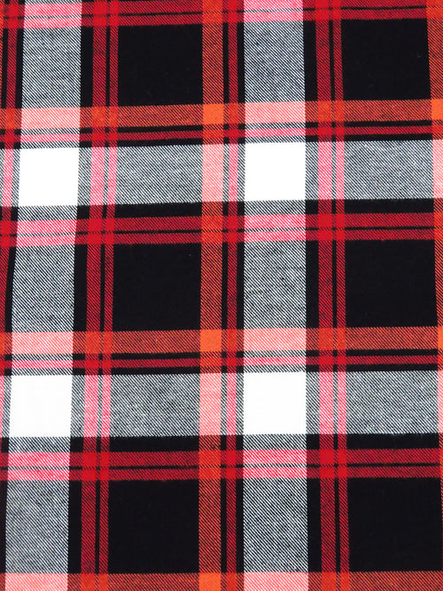 Black/White/Burnt Orange/Ruby Red 100% Cotton Plaid Weave Yarn-Dyed Flannel Shirting - NY Designer - 56W