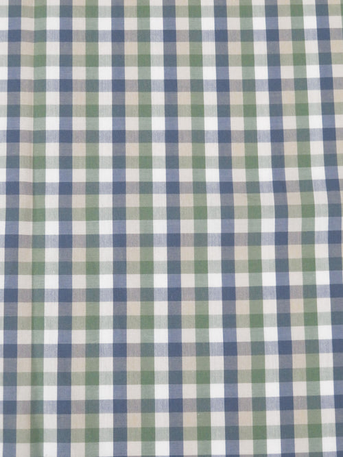 Wheat/White/Artichoke/Slate Blue 100% Cotton Yarn-Dyed Plaid Weave Shirting - NY Designer - 56W