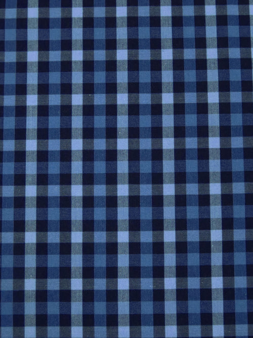 Midnight Navy/Light Vista Blue/Cyan Cobalt 100% Cotton Yarn-Dyed Plaid Weave Shirting - NY Designer - 56W