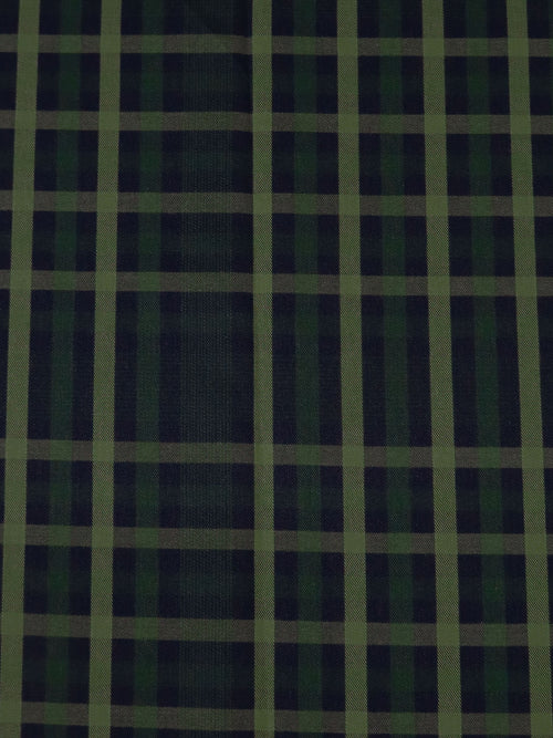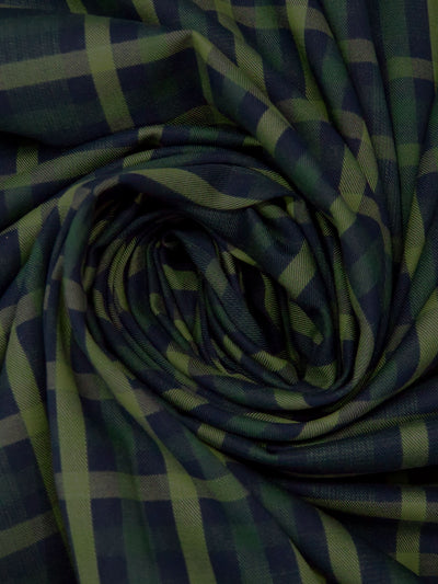 Midnight Navy/Asparagus/Dark Forest Green Cotton/Rayon Yarn-Dyed Plaid Weave Shirting - NY Designer - 54W
