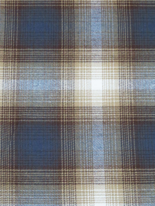 Dark Tan/White/Dark Cerulean/Dark Rose Ebony 100% Cotton Yarn-Dyed Plaid Weave Flannel Shirting - NY Designer - 54W