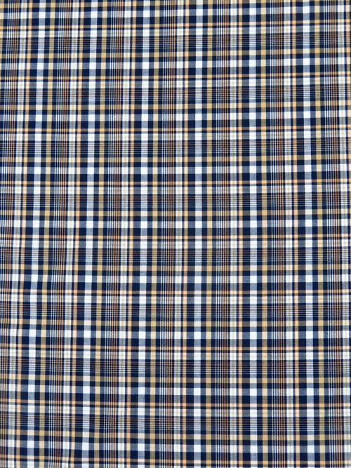 Midnight Navy/White/Mellow Apricot 100% Cotton Yarn-Dyed Plaid Shirting - NY Designer - 54W