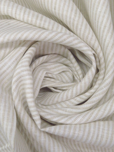 White/Sand 100% Linen Vertical Stripe Weave Shirt Weight Woven - NY Designer - 56W