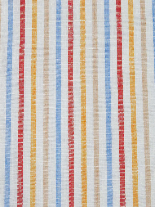 White/Marigold/Iceberg Blue/Multi 100% Linen Vertical Stripe Weave Shirt Weight Woven - NY Designer - 60W