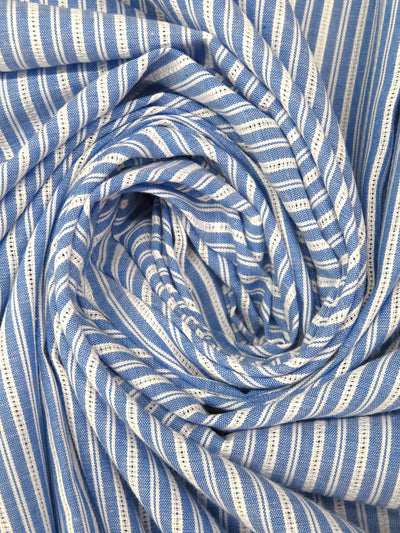 Dark Cornflower/White 100% Cotton Vertical Stripe Open Weave Shirting - NY Designer - 58W