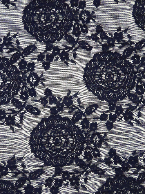 Midnight Navy 100% Polyester Medallion Floral Weave Pleated Lace Netting - NY Designer - 60W