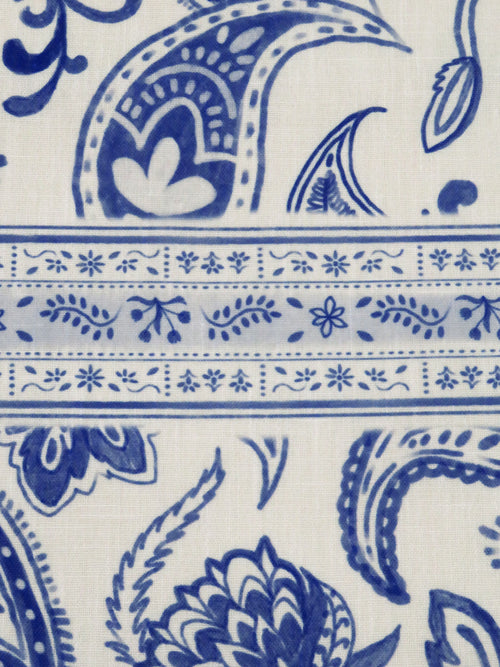 Dark Cornflower/Off-White 100% Polyester Ornate Paisley Horizontal Stripe Print Linen-Look Shirt-Weight Woven - NY Designer - 58W