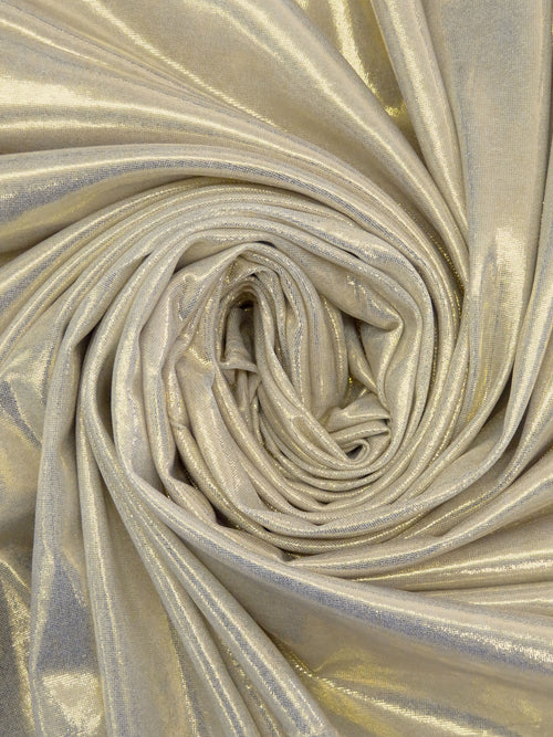 Gold/White Polyester/Lycra Foil Print Knit - NY Designer - 56W