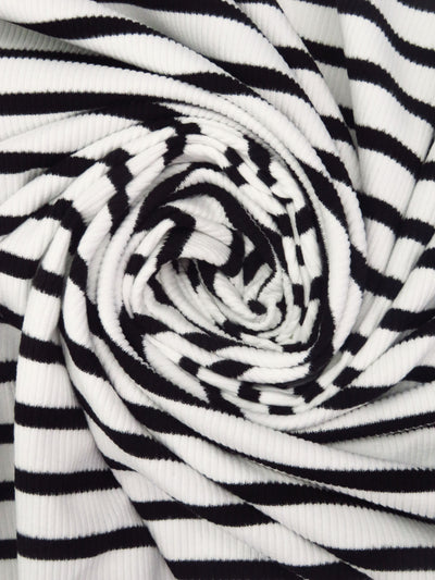White/Black Polyester/Lycra Horizontal Stripe Weave 1x1 Rib Knit - NY Designer - 56W