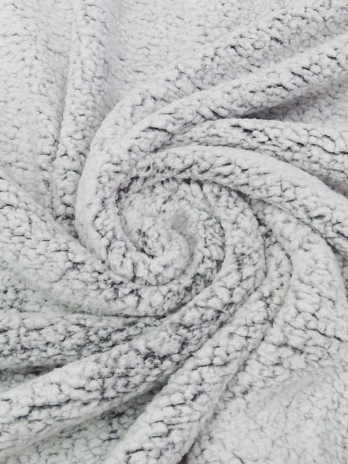 Soft White/Dark Lead Gray 100% Polyester Double-Faced Sherpa Fleece - NY Designer - 58W