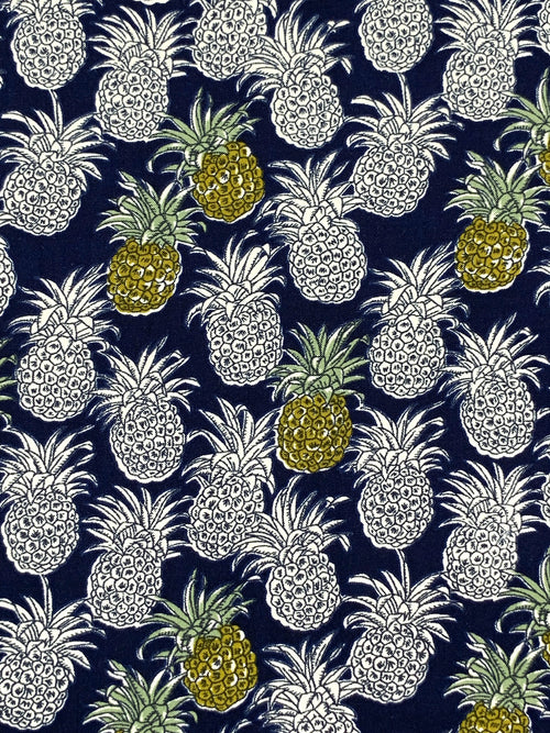 Navy/Brass/White 100% Rayon Pineapple Print Challis 43W