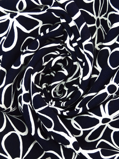Midnight Navy/White 100% Rayon Stylized Floral Print Challis 43W