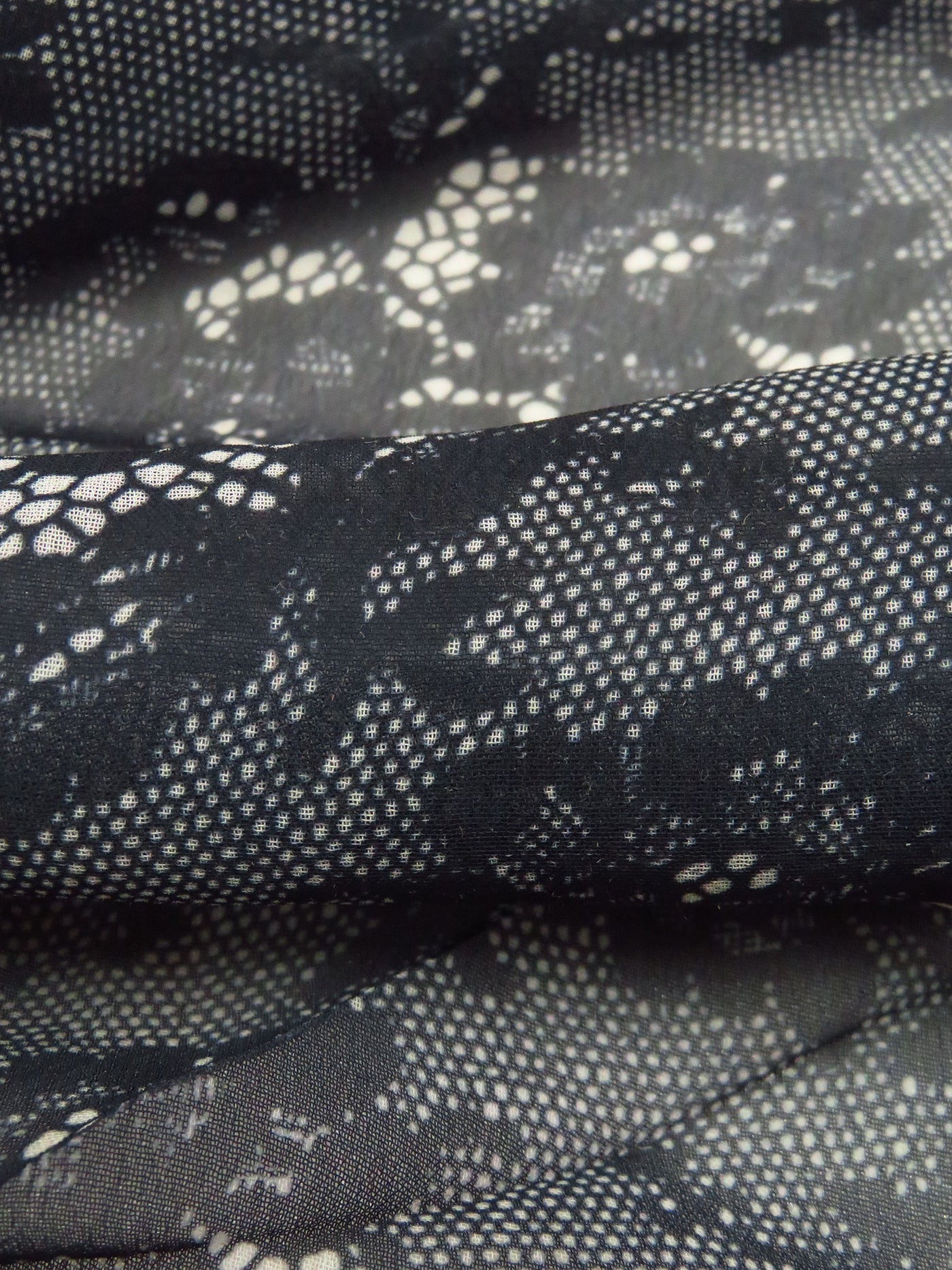 Black/Bone 100% Polyester Lace-Look Floral Print Chiffon - Famous Dress Designer - 56W