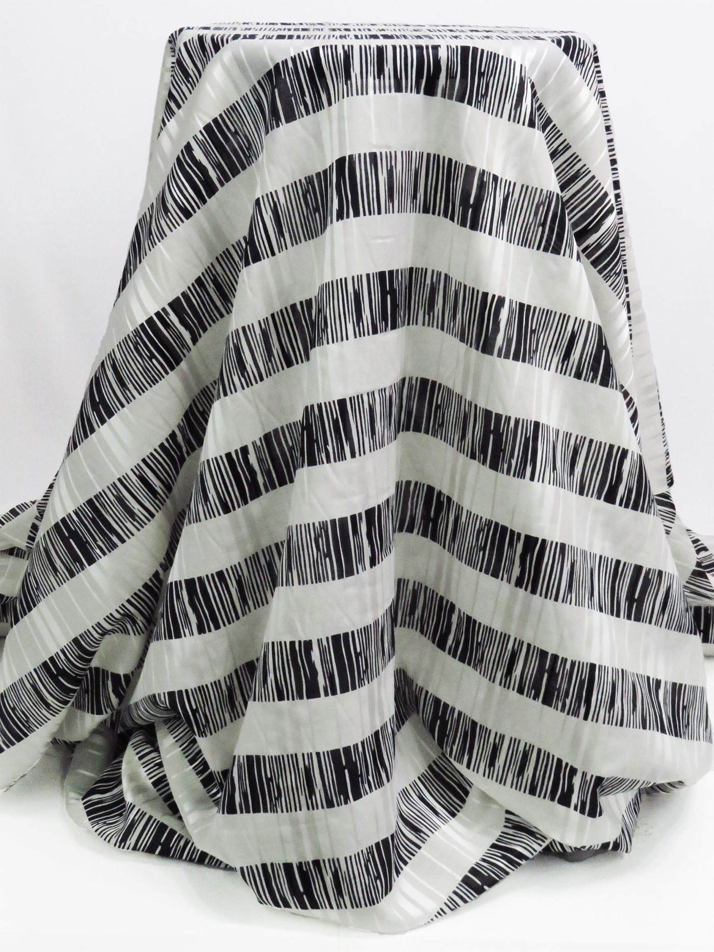 Black/Bone White/Bright White Silk/Cotton Horizontal Distressed Stripe Print On Vertical Sateen Stripe Voile - NY Designer - 45W