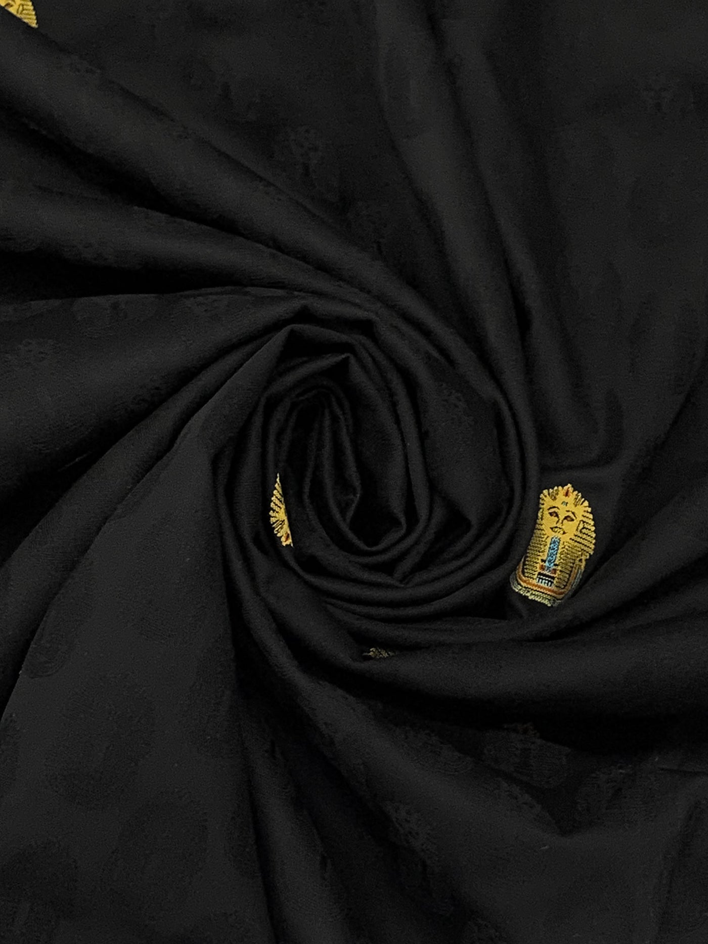 Black/Gold/Light Blue 100% Cotton Shadow Pharaoh Weave Jacquard Shirting - LA Designer - 60W