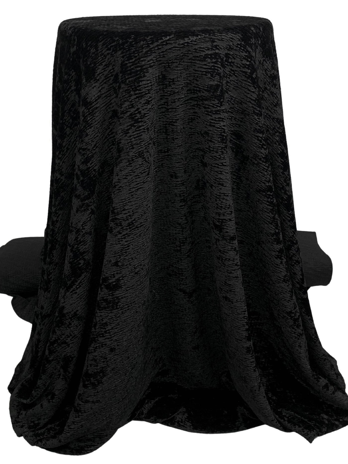 Black Polyester/Lycra Crinkle Weave Stretch Velvet Knit 58W