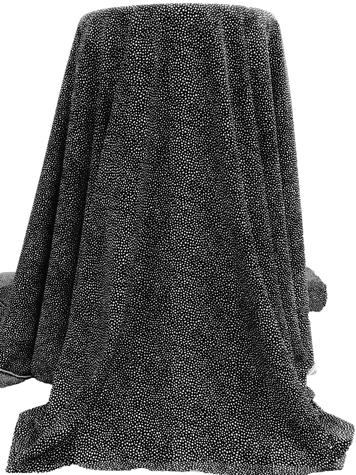 Black/White 100% Polyester Scattered Abstract Dot Print Peachskin Blouse Weight Woven - Imported From Italy - 58W