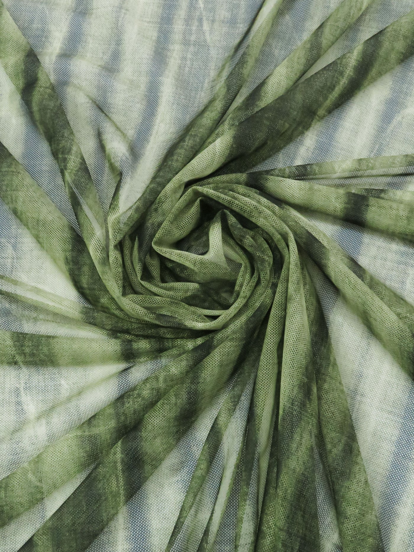 Bright Olive/Dill Green/Charcoal Nylon/Lycra Vertical Abstract Stripe Print Mesh Knit - NY Designer - 58W