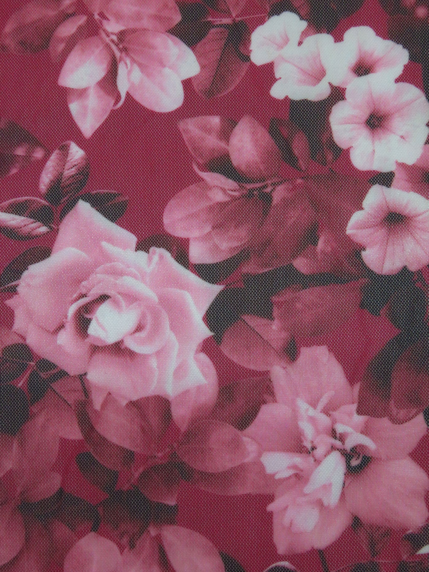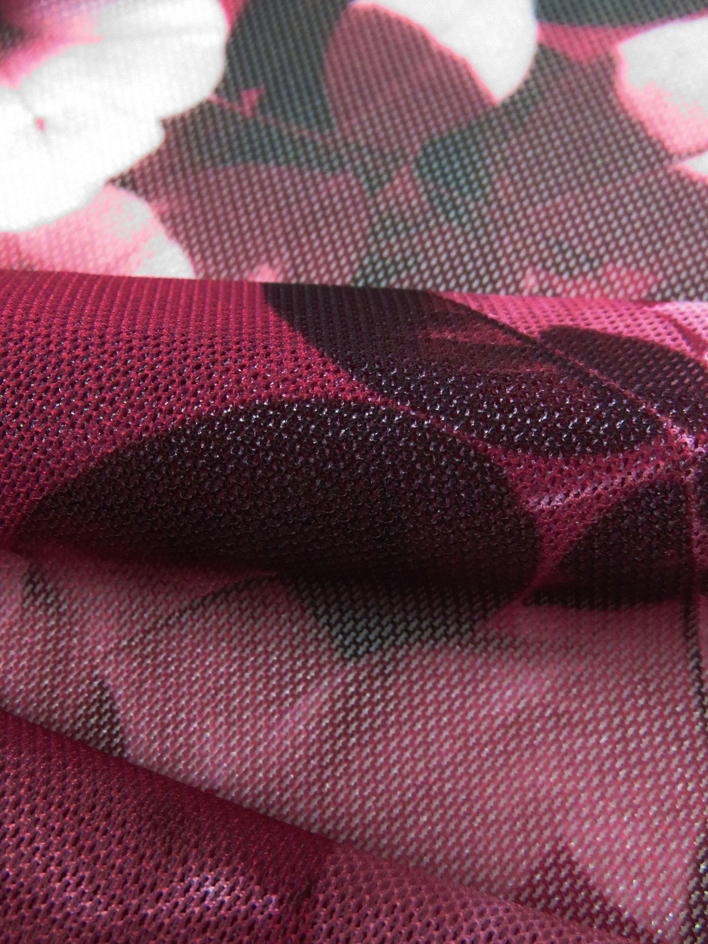 Claret/Light Pink/White/Multi Nylon/Lycra Floral Print Mesh Knit - NY Designer - 56W