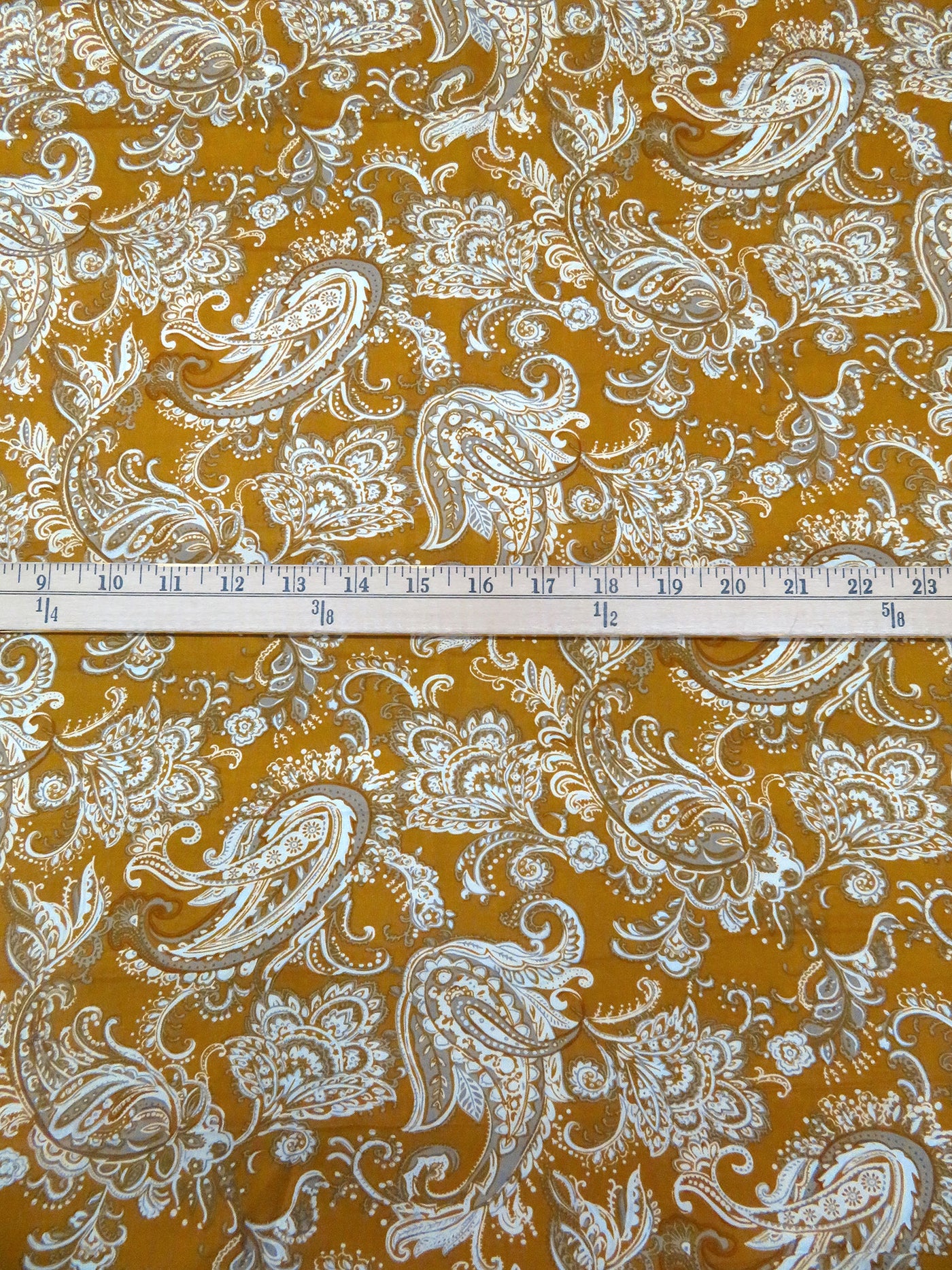 Dark Goldenrod/Bone/Iron 100% Rayon Paisley Print Challis 44W