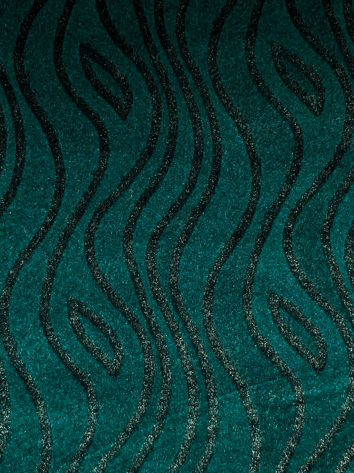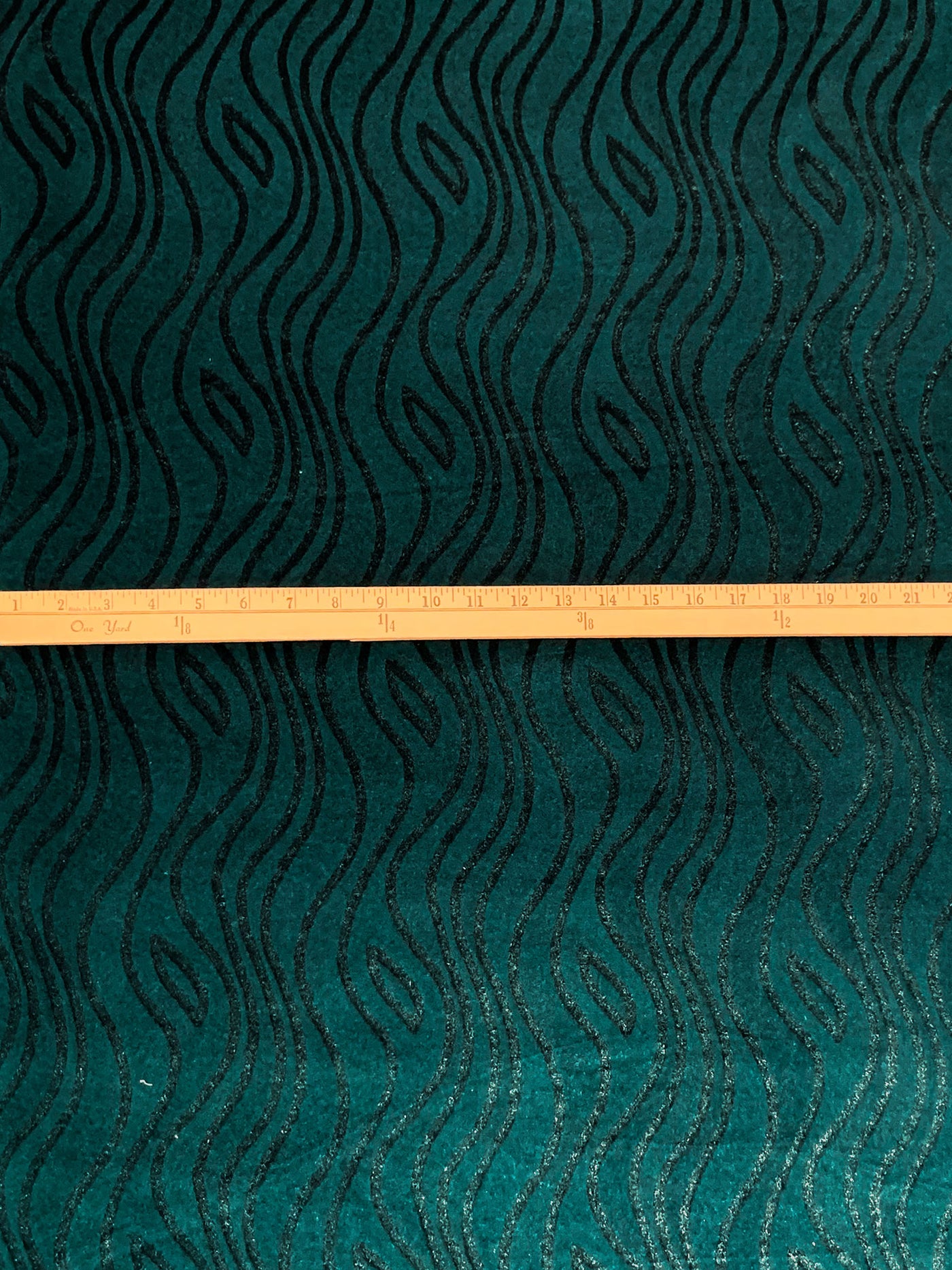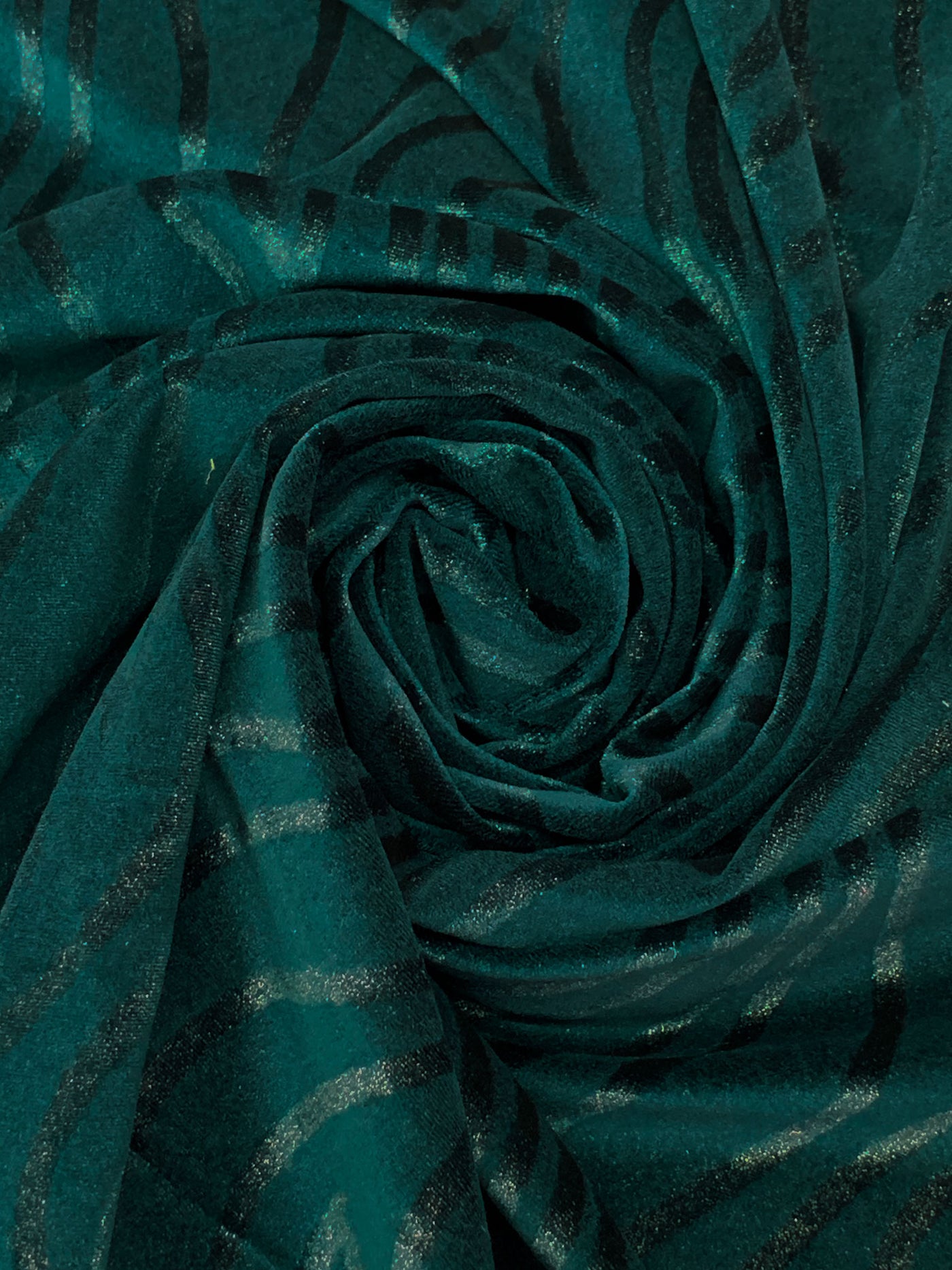 Dark Pine/Silver Polyester/Lycra Wavy Shimmer Print Stretch Velvet Knit 58W