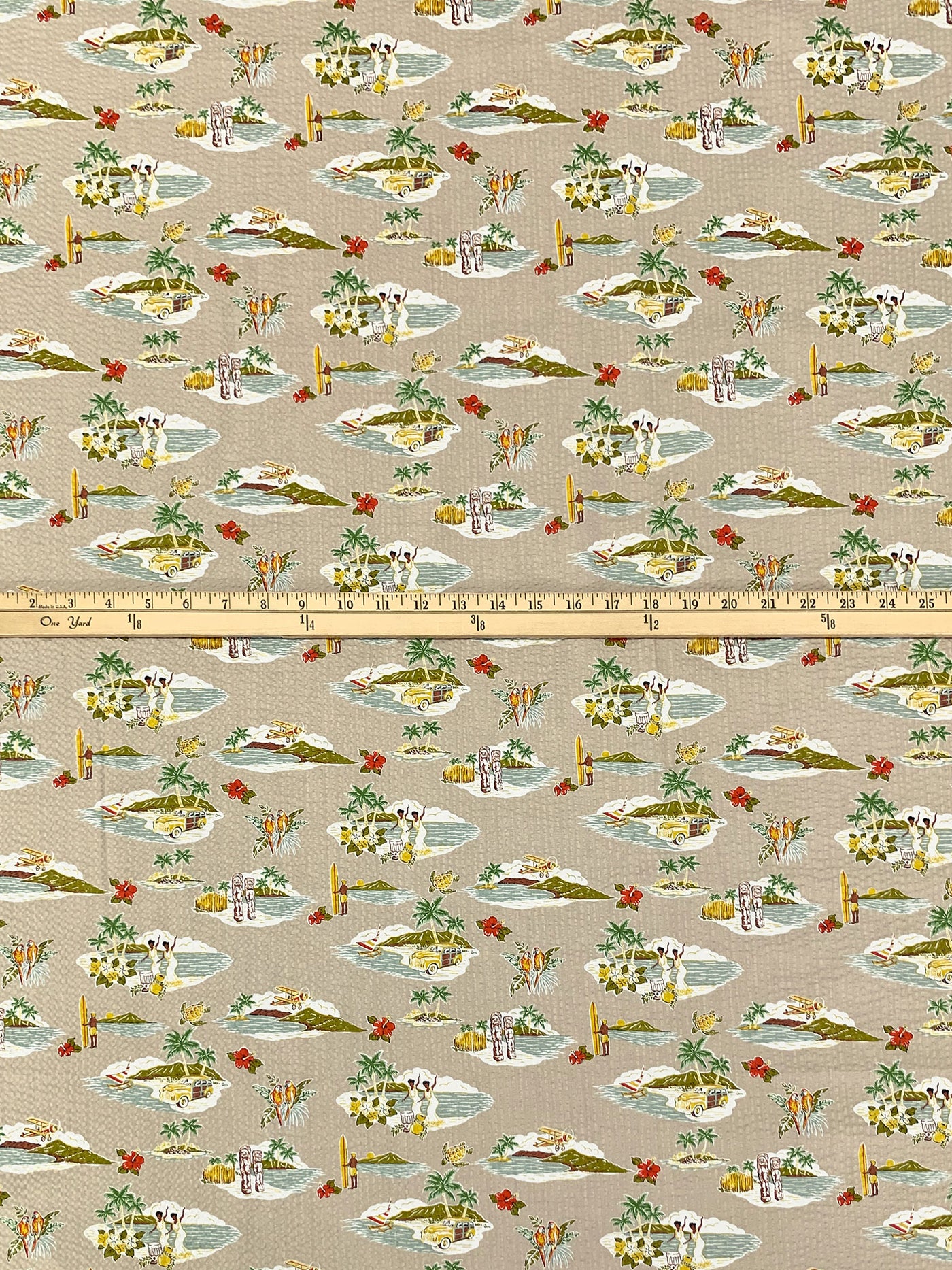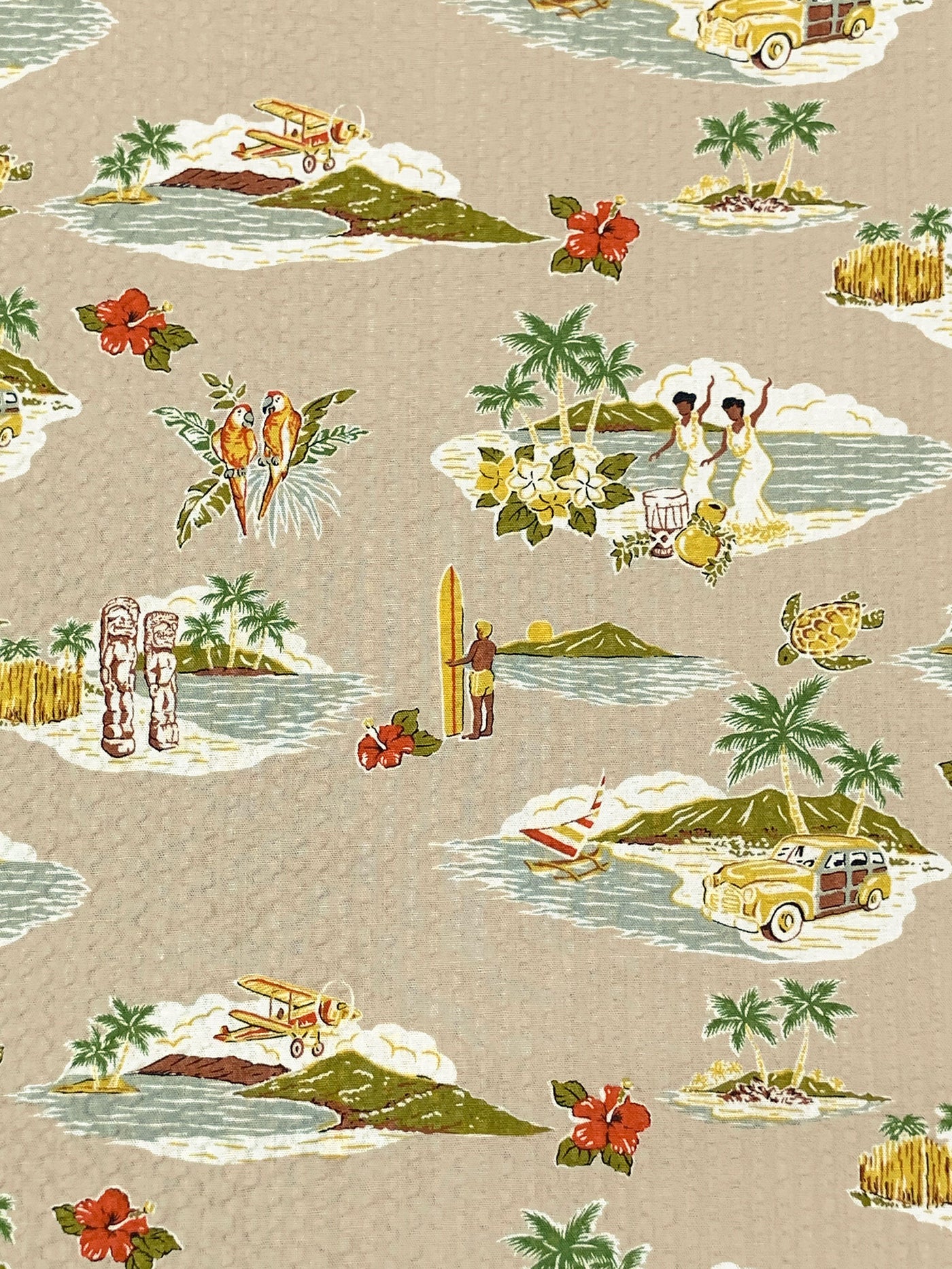 Dusty Tan/Mustard Green/Vermilion/Multi 100% Cotton Tropical Island Print Seersucker Plisse Shirt Weight Woven - Robert Kaufman - 42W