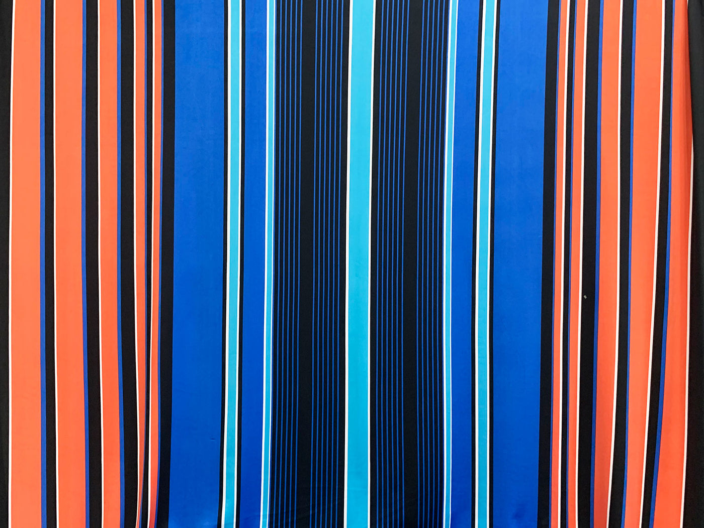 Fiesta Orange/Vivid Blue/Black/White Polyester/Lycra Large Vertical Stripe Print DTY Knit 60W