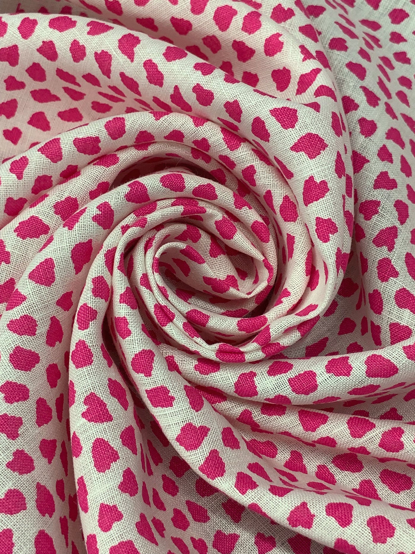 Fuchsia Rose Pink/White 100% Linen Pebble Print Midweight Woven - European Mill - 58W
