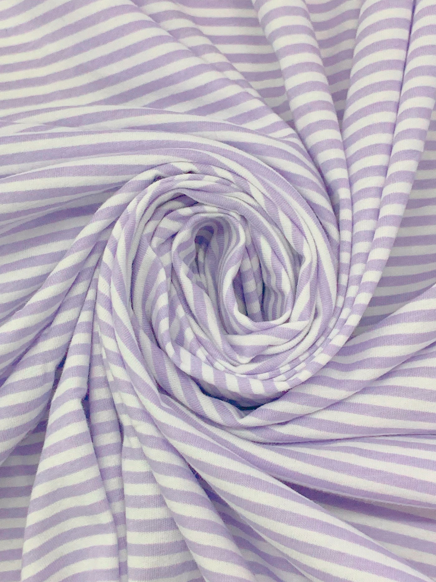 Lavender/White 100% Cotton Horizontal Stripe Print Jersey Knit - NY Designer - 60W