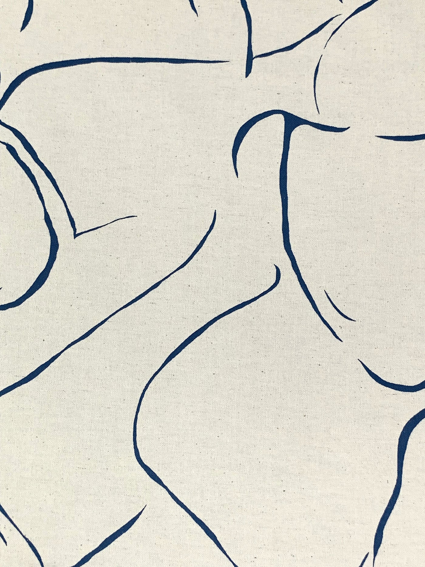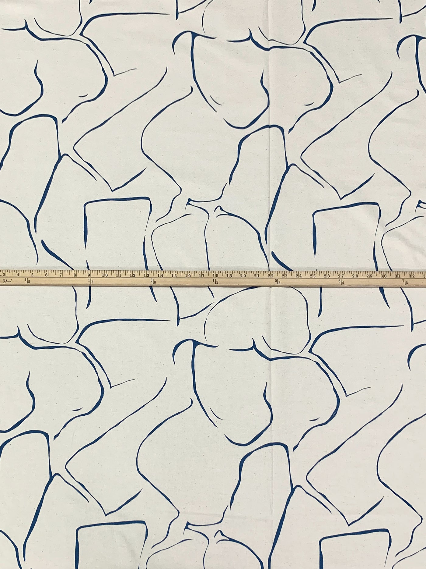 Light Greige/Dark Cerulean Cotton/Linen Abstract Print Midweight Woven - Corey Lynn Calter - 56W