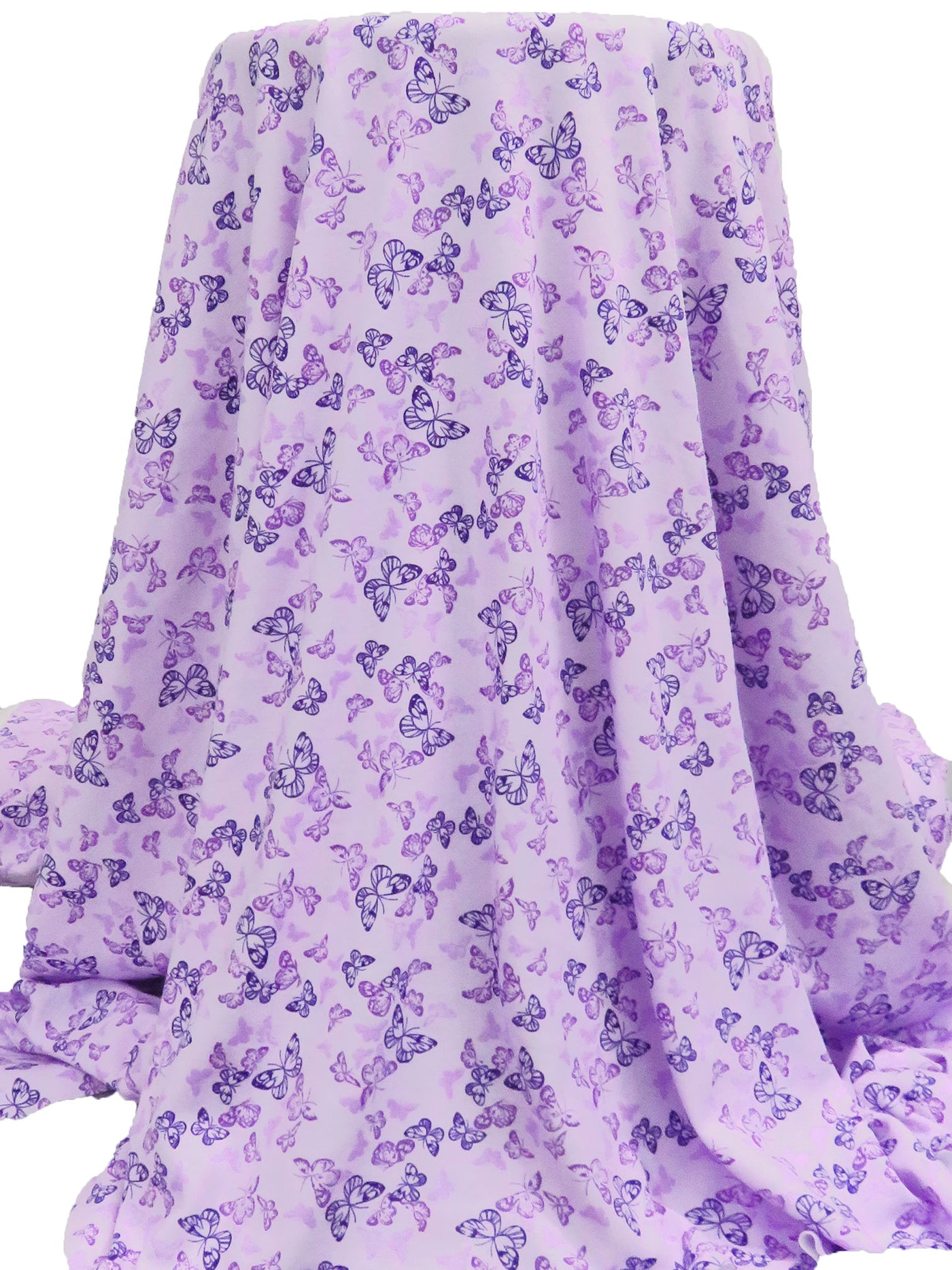 Light Lavender/Lilac/Midnight Purple/Dark Wisteria 100% Cotton Butterfly Print Interlock Knit - NY Designer - 66W