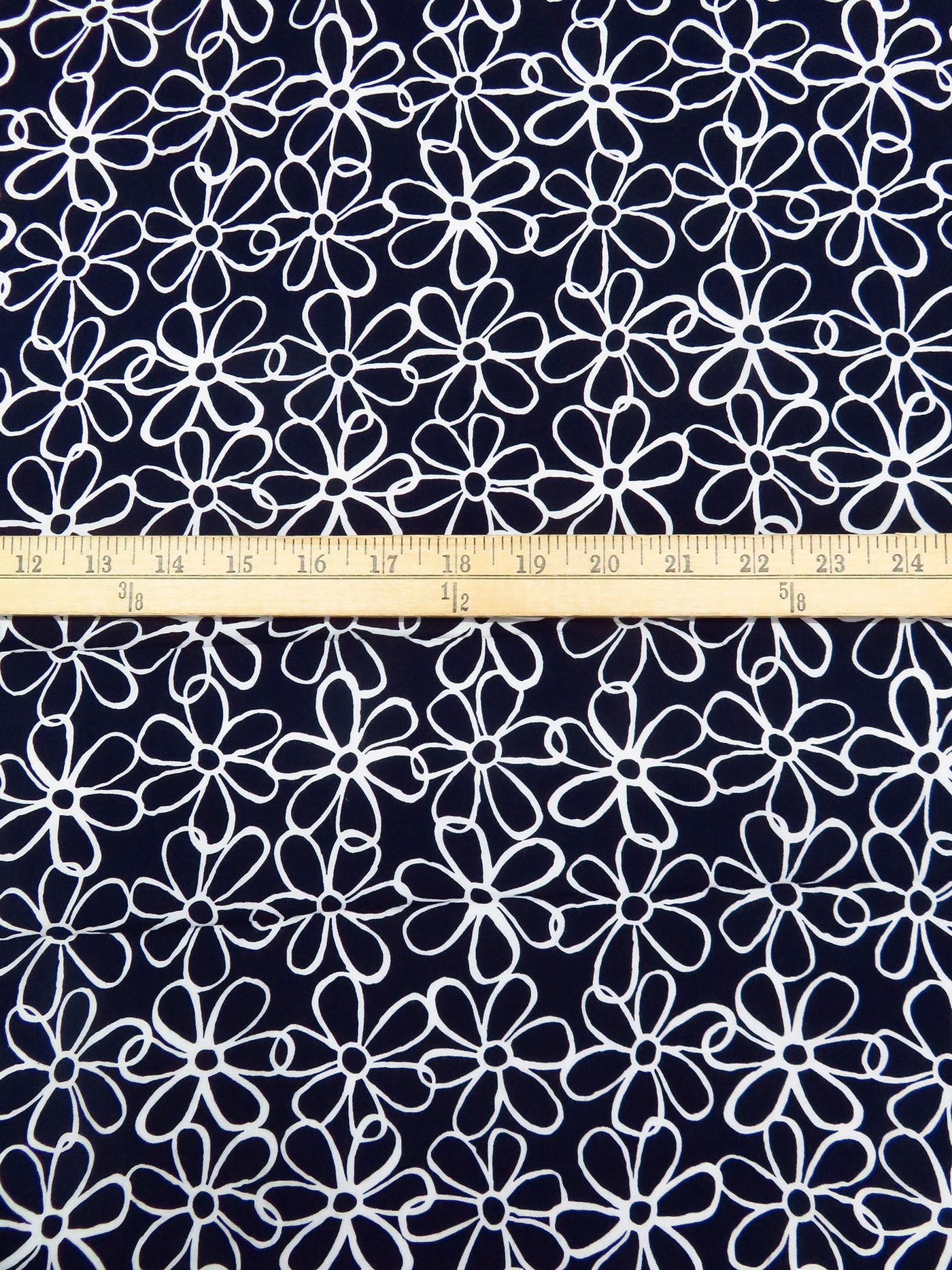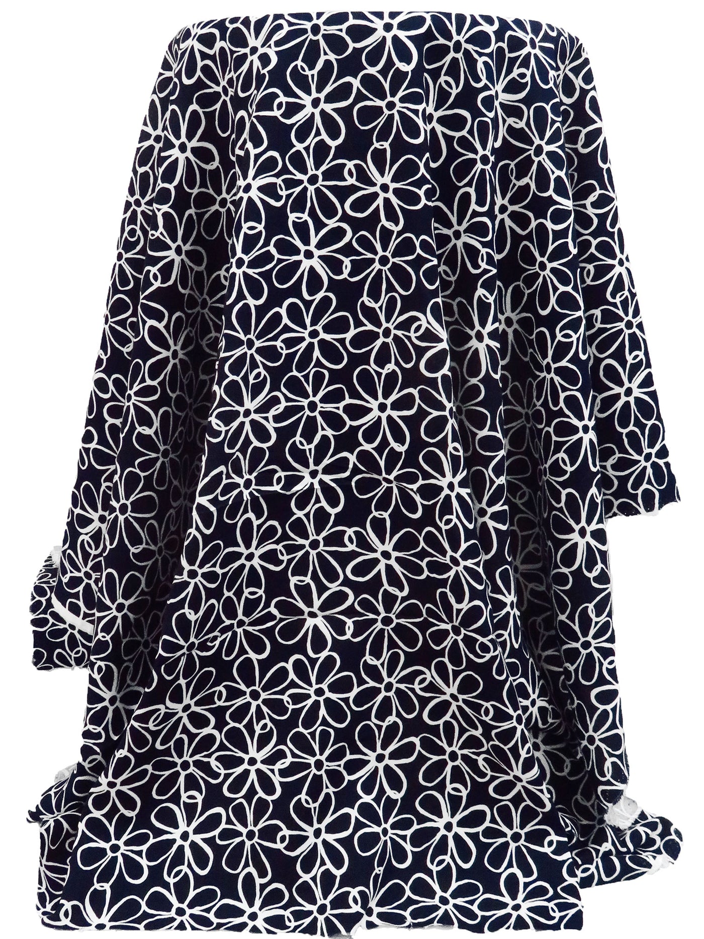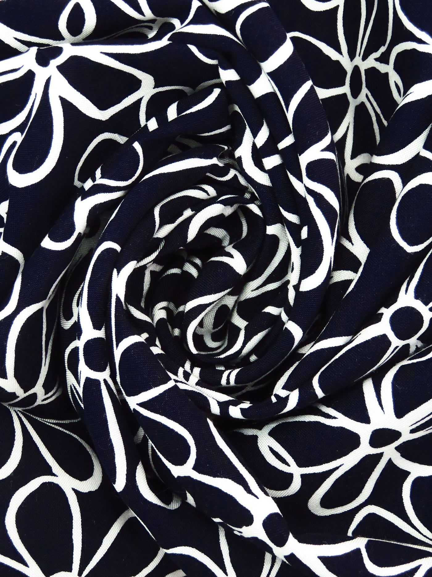 Midnight Navy/Ghost White 100% Rayon Artistic Floral Print Challis 43W