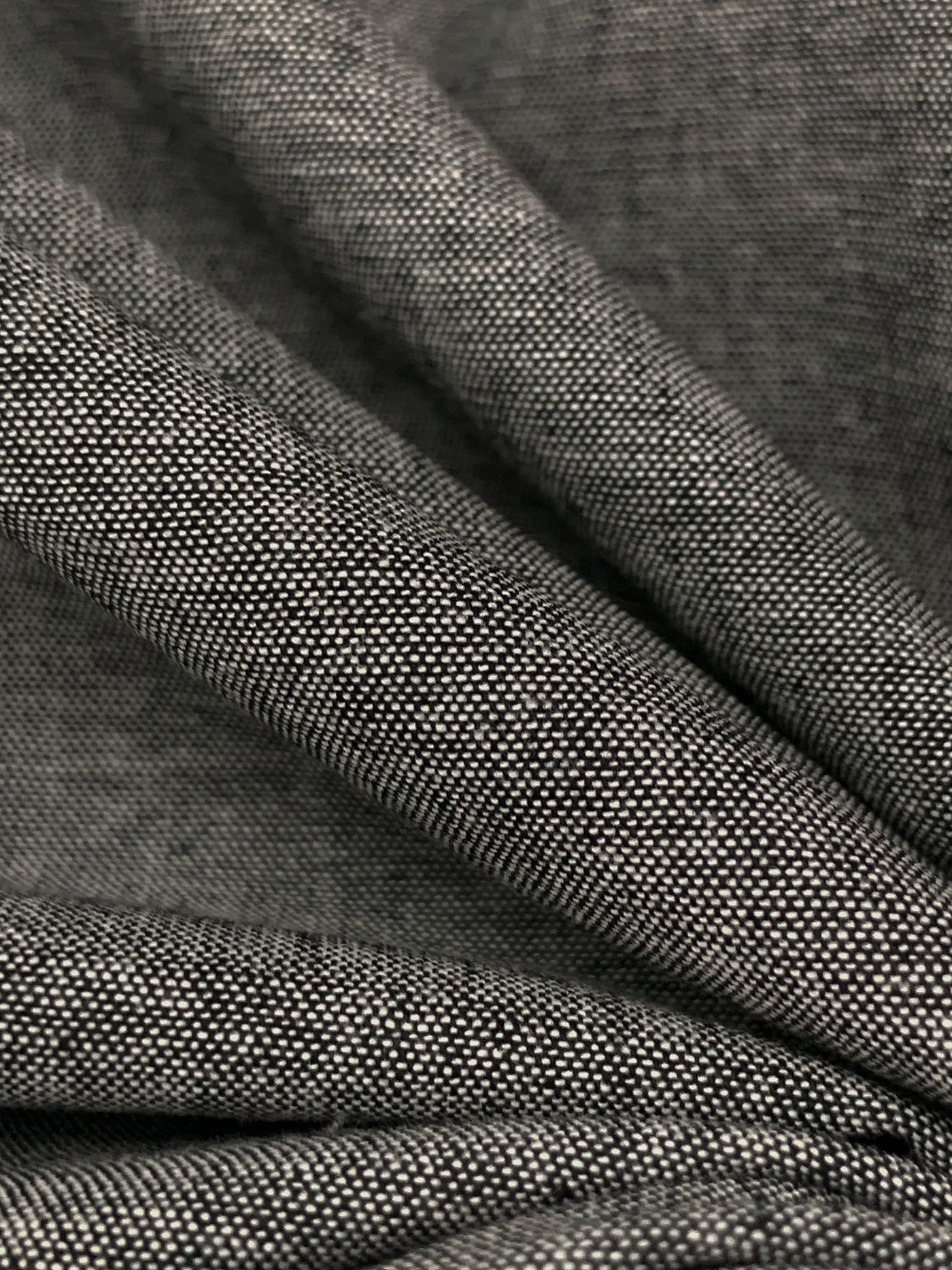 Muted Cool Black/Off-White 100% Linen Chambray Shirting 57W