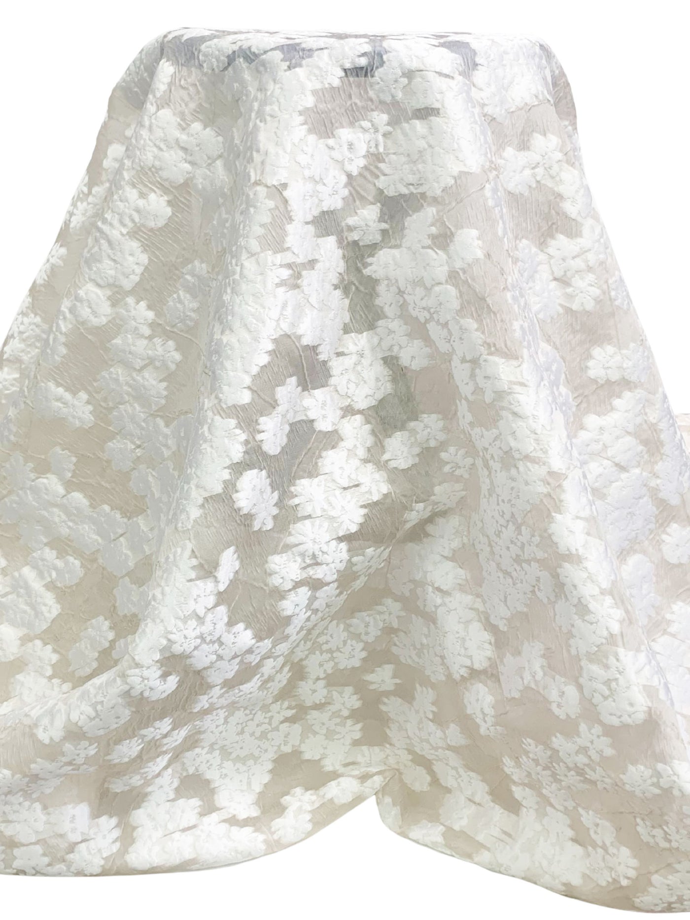Penguin White Silk/Polyester Floral Burnout Jacquard Organza - Imported From Italy By NY Designer - 55W
