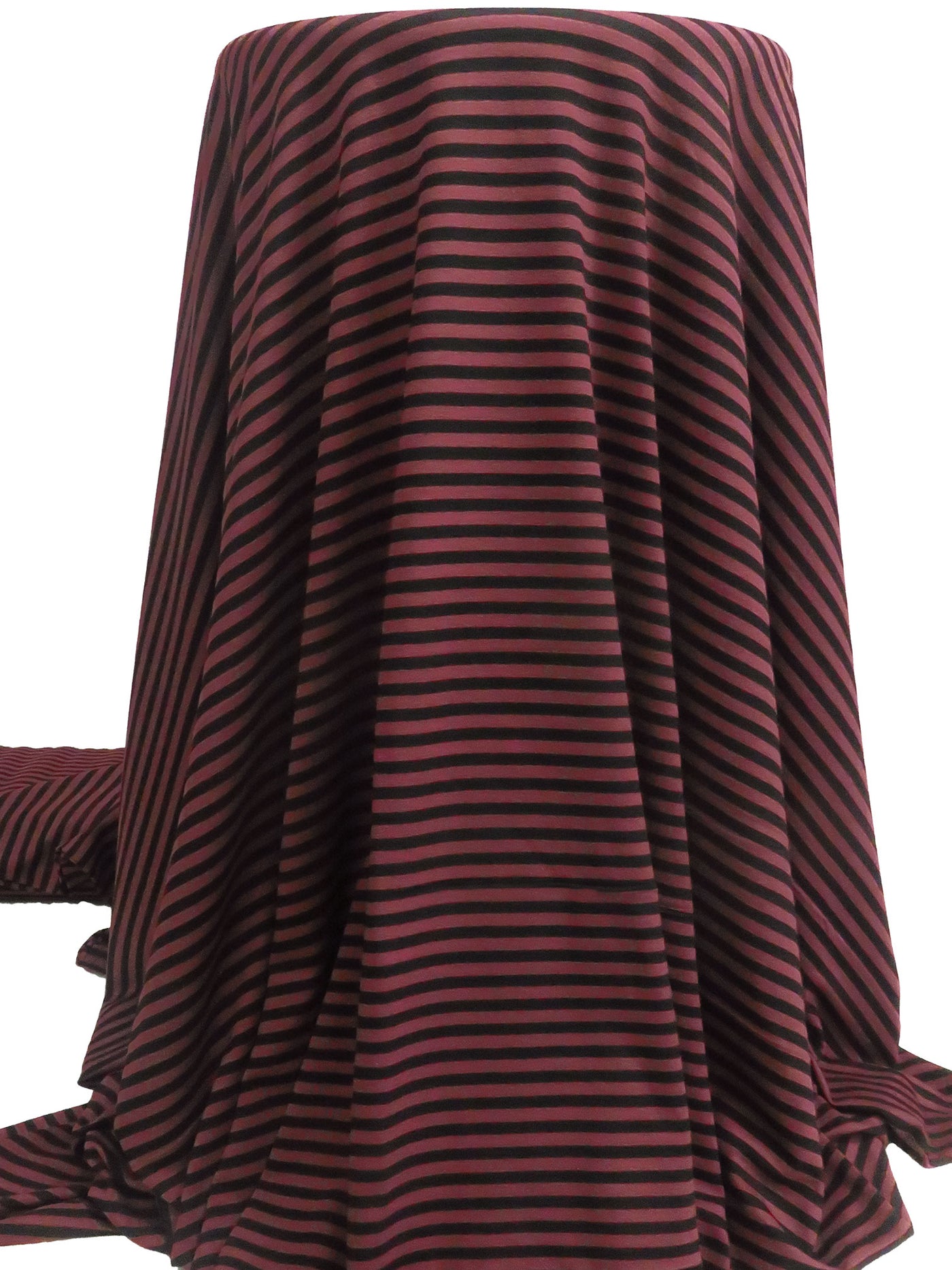 Puce Red/Black Rayon/Lycra Horizontal Stripe Weave Jersey Knit 62W