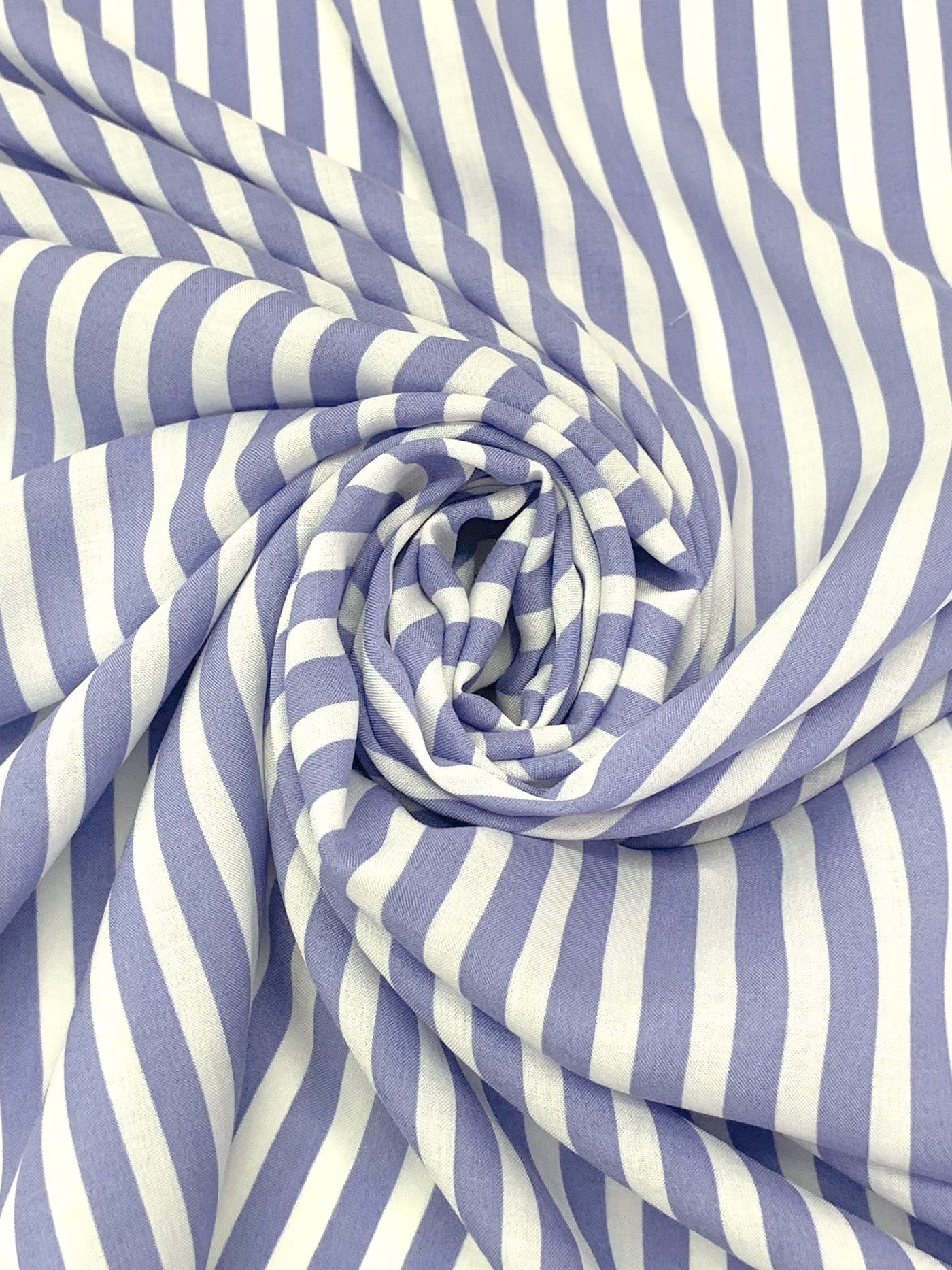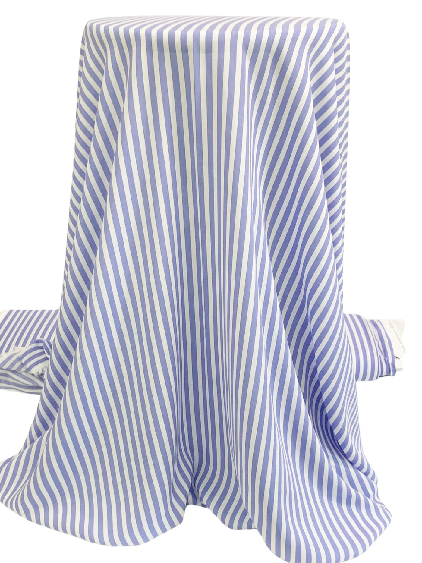 Queen Blue/White 100% Rayon Vertical Stripe Print Voile - NY Designer - 55W