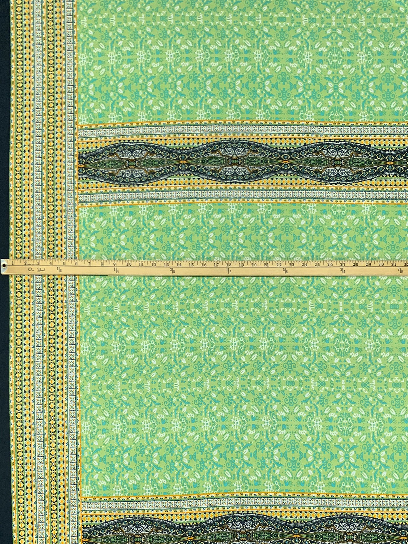 Stem Green/Turquoise/Off-White/Goldenrod Polyester/Lycra Double Border Abstract Framework Print DTY Knit 60W