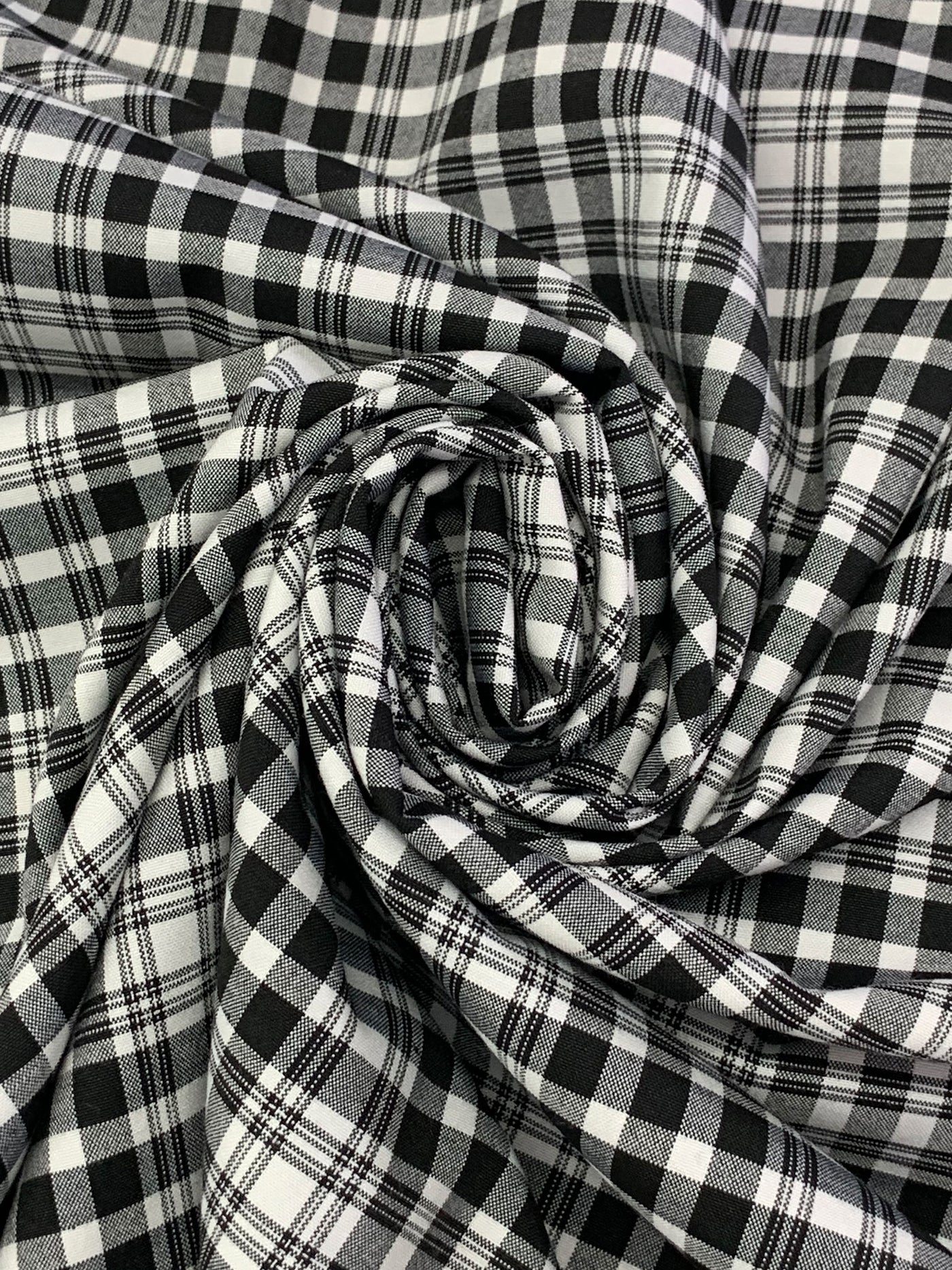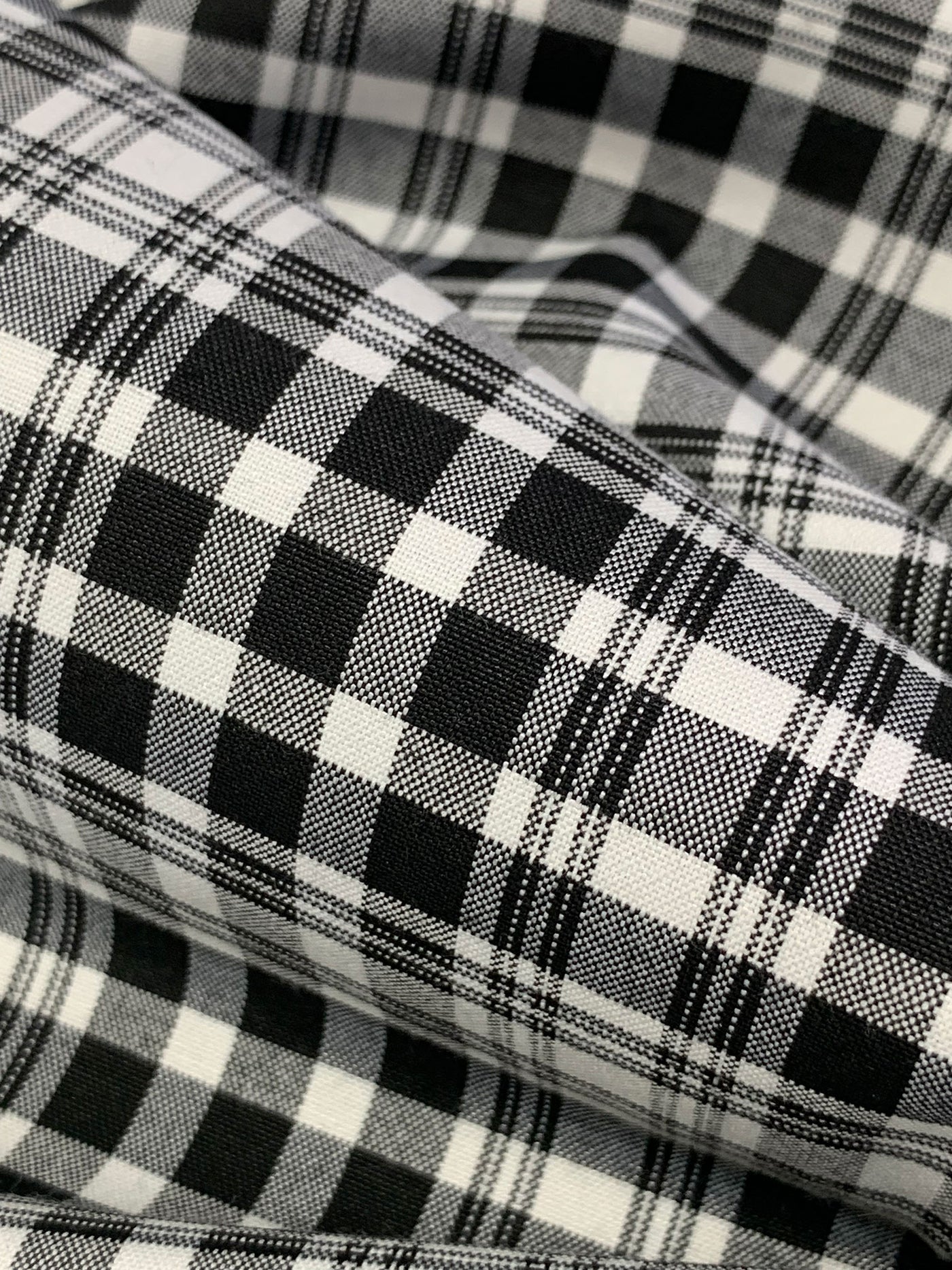 White/Black Polyester/Cotton/Lycra Yarn-Dyed Plaid Stretch Shirting 59W
