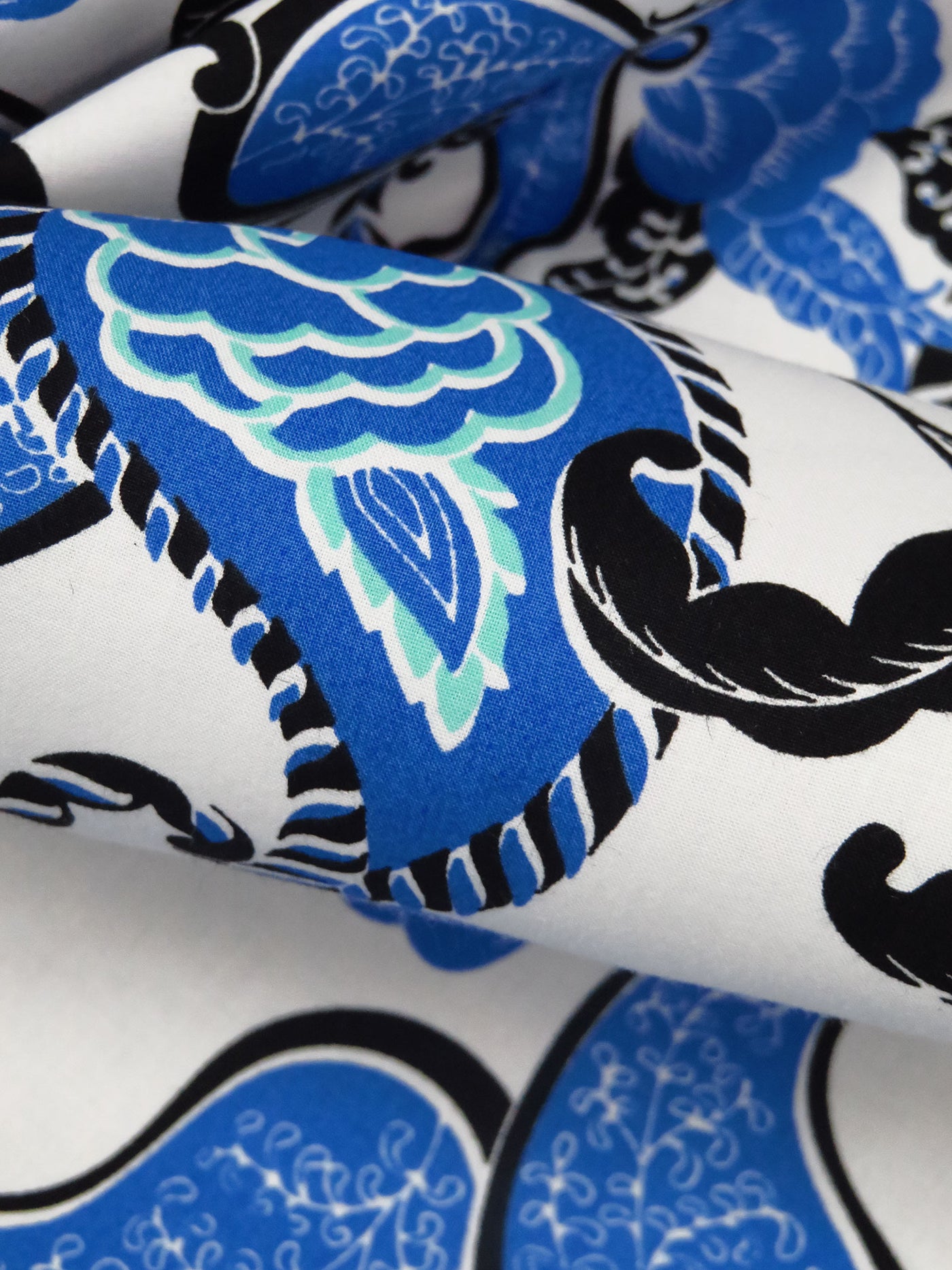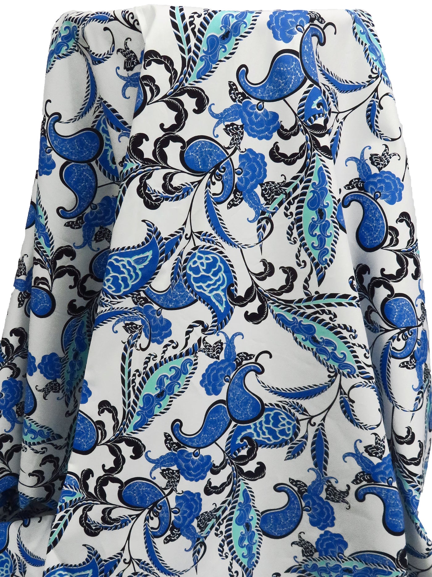 White/Dark Cornflower Blue/Black/Multi 100% Cotton Paisley Folk Floral Print Lawn 58W