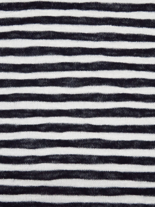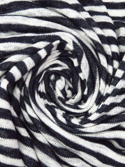 White/Dark Navy Rayon/Polyester Blend Horizontal Stripe Weave Sweater Jersey Knit - LA Designer - 56W