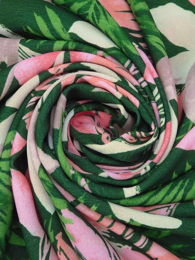 Grass Green/Flamingo/Taupe Polyester/Lycra Tropical Floral Print Stretch Crepe - NY Designer - 58W
