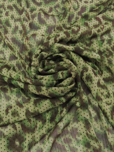 Pickle Green/Espresso/Black/Multi 100% Polyester Mini Dot On Animal Print Crinkle Chiffon 57W