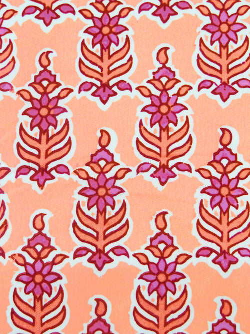 Salmon/Off-White/Petal Pink/Red Cotton/Polyester/Lycra Floral Block Print Stretch Twill - NY Designer - 56W