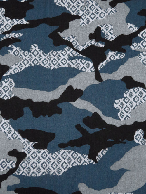 Blue Gray/Black/Slate Gray 100% Rayon Stylized Camo Print Crinkle Challis 50W