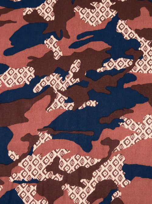 Maroon/Marine Blue/Burnt Sienna 100% Rayon Stylized Camo Print Crinkle Challis 50W