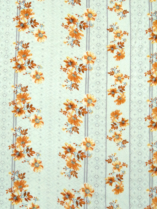 Pale Mint/Ochre/Cloud Gray/Multi 100% Rayon Floral Vertical Stripe Print Challis 58W