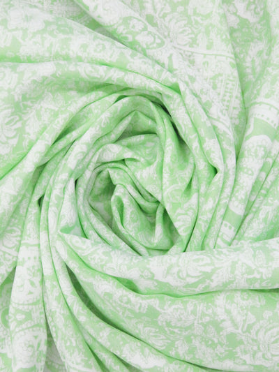 Granny Smith Green/White 100% Rayon Ornate Floral Framework Print Challis 56W
