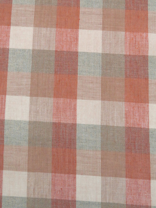Oatmeal/Dusty Salmon/Sandy Tan 100% Linen Box Plaid Weave Shirt-Weight Linen - European Mill - 60W