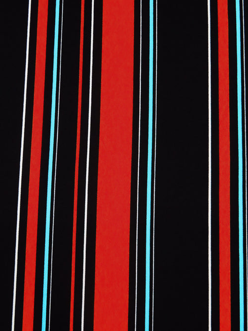 Black/Maximum red/White/Aqua Polyester/Lycra Vertical Stripe Print Crepe Double Knit 56W