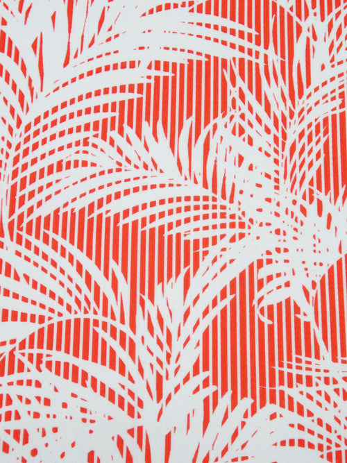 Cinnabar/White Polyester/Lycra Palm Leaf On Vertical Stripe Print Liverpool Knit 56W